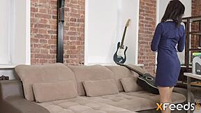 Stunning latina model strips in audition, daddy fucks her deep on sofa