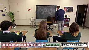 Classroom contest turns hardcore with petite teen blowjobs and ass games