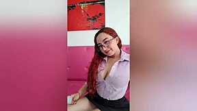 Petite Colombian Latina teen with red hair stripteases and fingers her hairless shaved pussy in solo session.