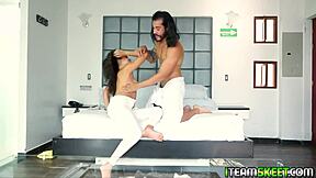 Latina coed insists on condom for rough first-time domination