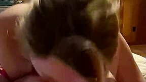 cute wife teases with deepthroat blowjob swallows mouthful cum closeup