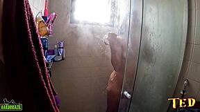 black slut, you shower and get fucked in toilet