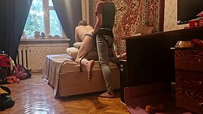 Anastasia Pegs Slave Sasha Earth in Homemade Russian Femdom Strapon Session