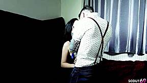 Nympho black goth girl with saggy tits seduces old guy for rough anal