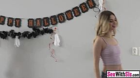 Hey, it's trick or treat time on Halloween with my hot stepsister in that cool ghostface costume