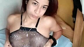 Dicke brünette Latina-Hase fingert buschige Muschi zu doppeltem Orgasmus