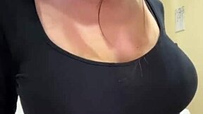 Stunning blonde squeezes her big natural tits during a relaxing solo moment.