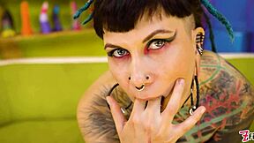 goth queen teases pierced small tits before dripping facial cumshot pov sloppy