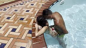 The neighbor's hot mom bends over by the pool for intense doggystyle pounding like a pro