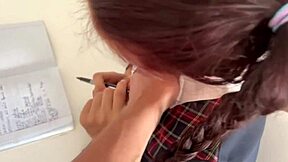 My school teacher agrees to quickie creampie sex with shaved pussy riding and muff diving in homemade part 2.