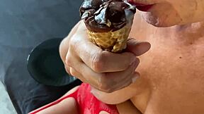 Femdom milf mixes ice cream with cum swallow fetish 😈🍦💦
