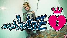 Heavily Tattooed Model's Intense Shower Anal Dildo Play