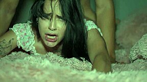 skinny hairy brunette with natural tits bangs in anal gangbang