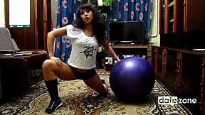 Naked Brunette Amateur Humps Exercise Ball Tits Orgasm Legs Spread Workout