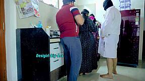 Trois docteurs chauds rebondissent sur la bite du patient chanceux dans un plan à 4 sauvage