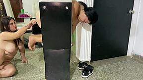Guy HELPS his TRANS GF Alice Marques TAKE a MACHINE MOUNTED DILDO.