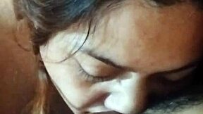 stepdaughter sneaks blowjob on stepdad's cock trying new sexy clothes bedroom pov