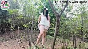 Brunette Teen Kate Cosplays In Public, Bent Over For Hotdogging In Outdoor Cartoon Game Scene.