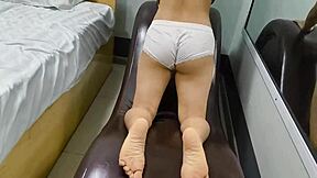 Shower tempts long-haired brunette model into daddy's massage tease?
