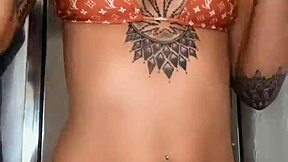 I feel so connected modeling this tiny black micro bikini, showing my pierced nipples and skinny tattooed body in part 2