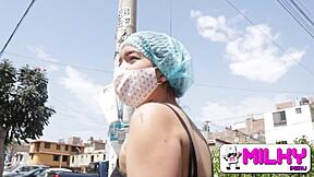 Petite asian amateur fucks quickly in interracial handjob