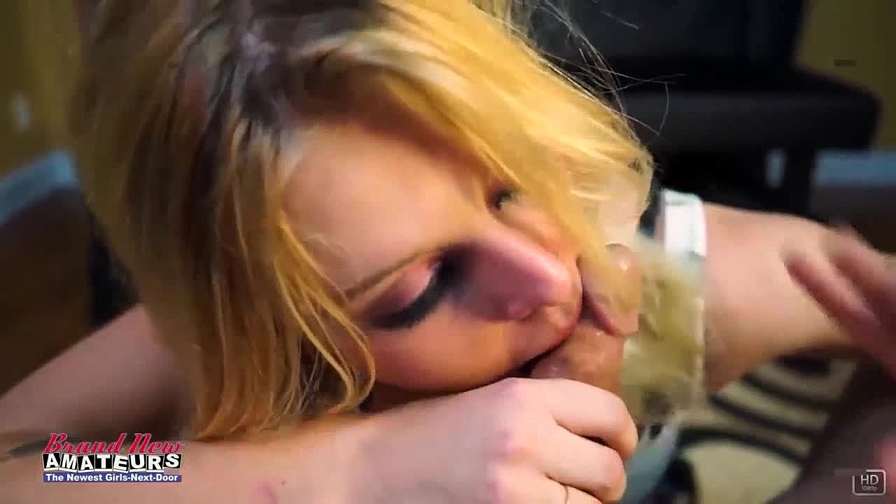 I'm a blonde teen sucking a big cock in POV, getting cum in my mouth after handjob and blowjob