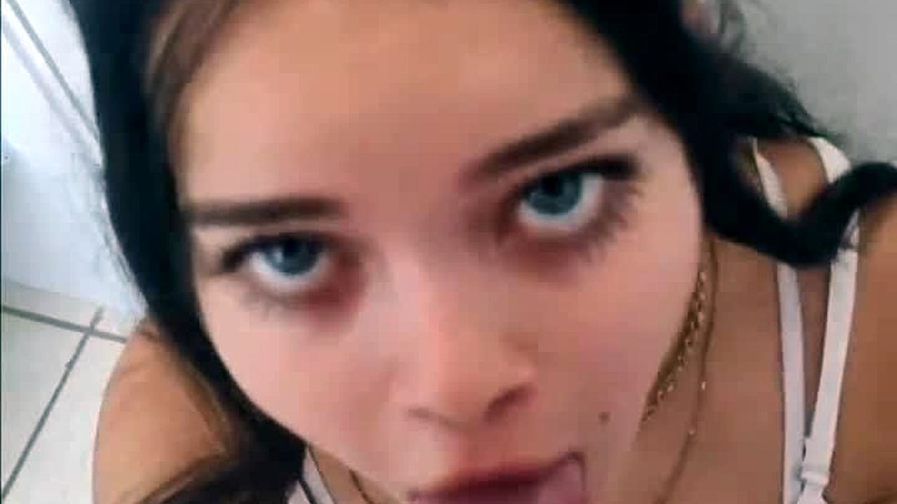 Watch this cute babe lick balls roughly on a big cock! 😏