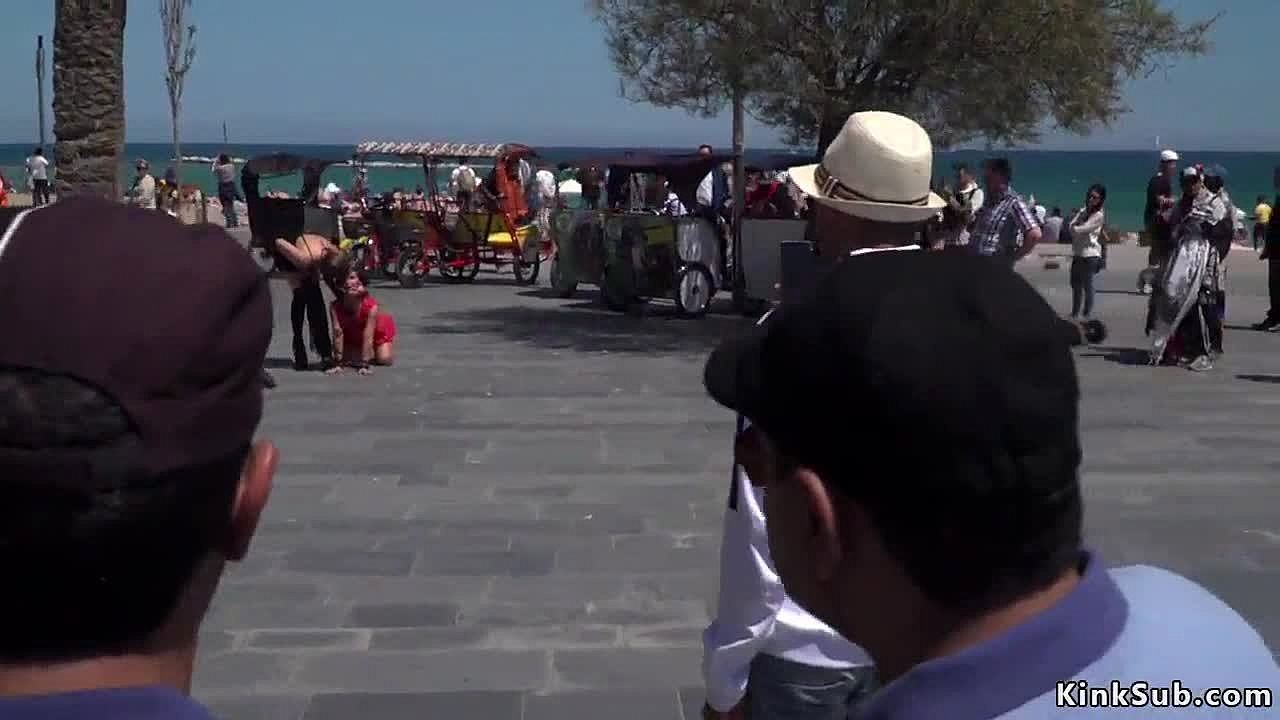 Yaramaz lezbiyenler Marshswallow ve Katty West dışarıda kamera önünde üçlüde vücutlarını sergiliyor