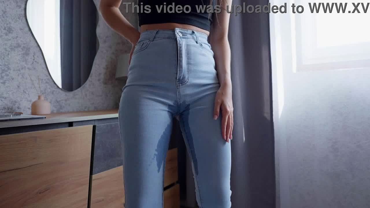Amateur Curvy Babe In Jeans And Panties Experiences Desperation Pee On Sweatpants During Gym Workout